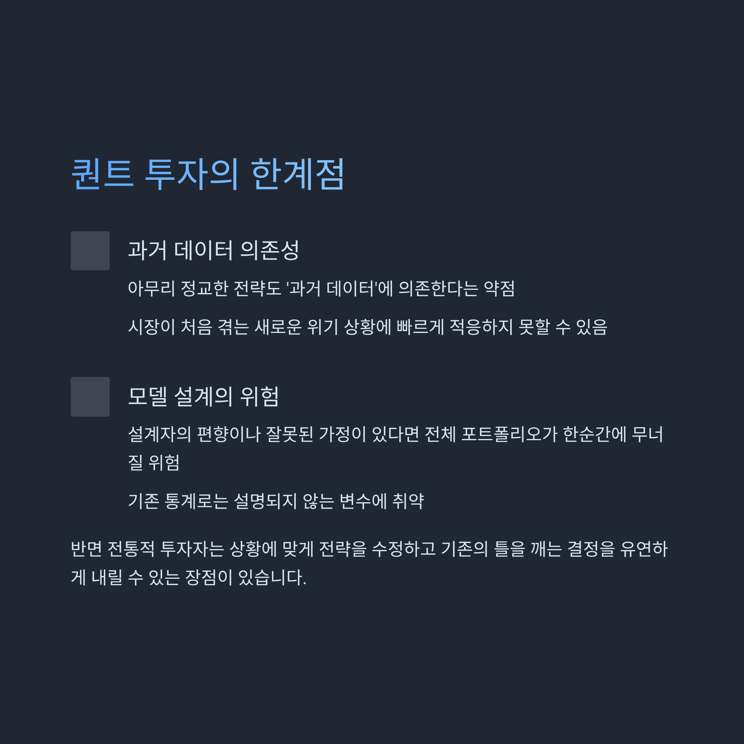 다만, 퀀트 투자든 전통적 투자든 중요한 것은